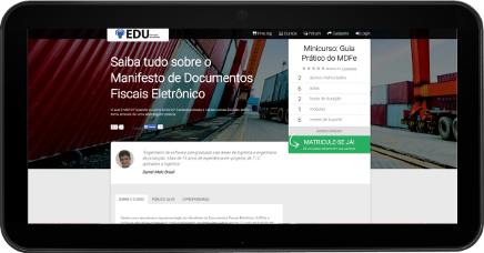 Neste curso aborda-se a regulamentação do Manifesto de Documentos Fiscais Eletrônico (MDFe) e todos os requisitos necessários para as empresas se adequarem a esta norma. O curso está divido em duas etapas. Na primeiro etapa apresenta-se os detalhes do projeto MDFe, especificado o que é, quem está obrigado a adequar-se e o que é necessário para isto. Na segunda etapa, apresenta-se um passo-a-passo para emitir o primeiro MDFe.